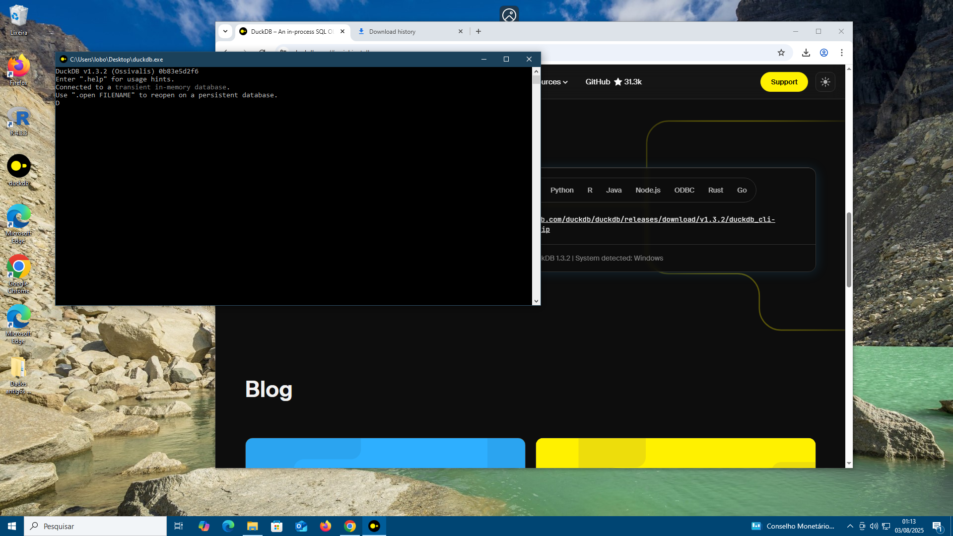 - O duckDB é extremamente rápido pois processa dados na memória e sem necessidade de escrever em disco. É ideal para análises interativas e queries complexas, rodando dezenas de vezes mais rápido que R ou python.