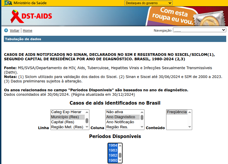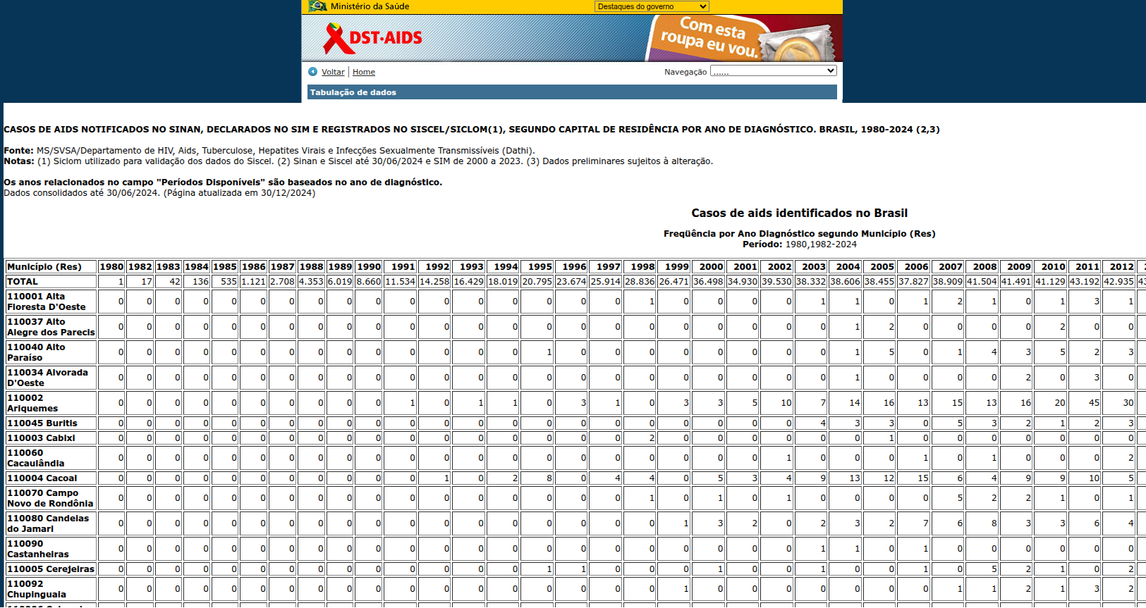 Dados podem ser organizados de diversas formas. No campo da Epidemiologia, o formato mais comum é o tabular. Porém, muitas vezes nos deparamos com “tabelas” que não estão no formato adequado para a análise e produção de gráficos. Veja a planilha abaixo, por exemplo:
