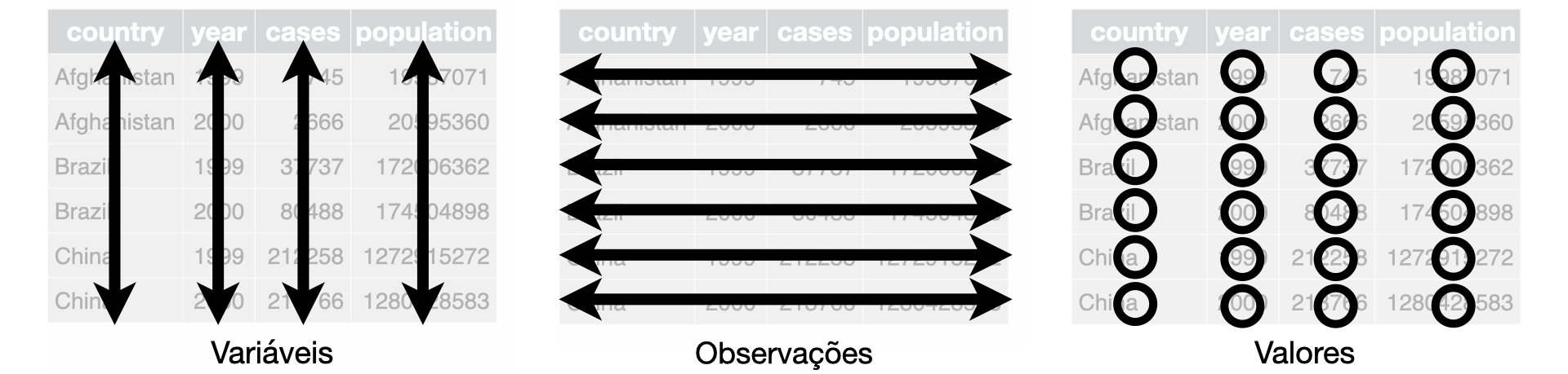 , que possui funções poderosas e permitem um fluxo intuitivo para tornar os dados tidy (organizados). Vamos relembrar a filosofia da tidy data: