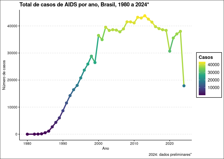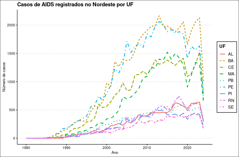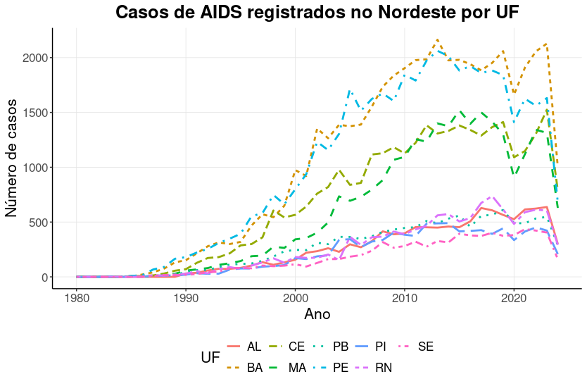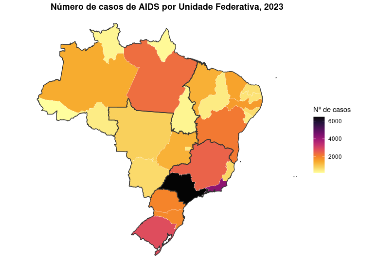 labs(title = 'Número de casos de AIDS por Unidade Federativa, 2023') +