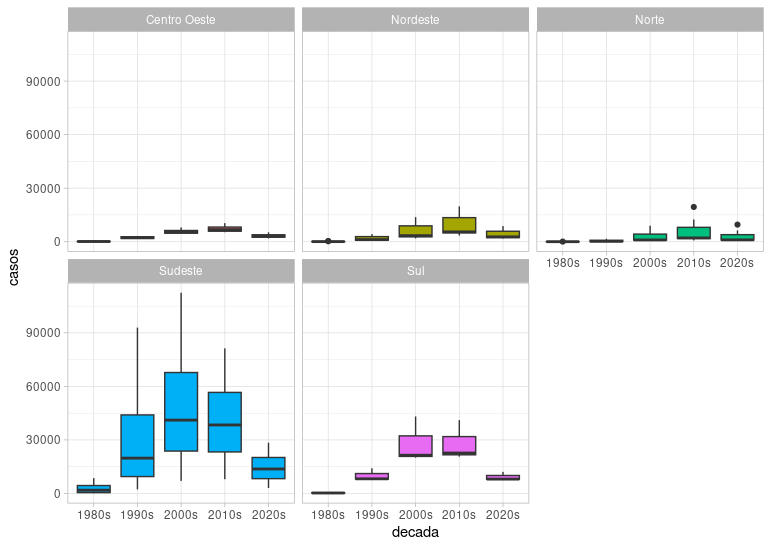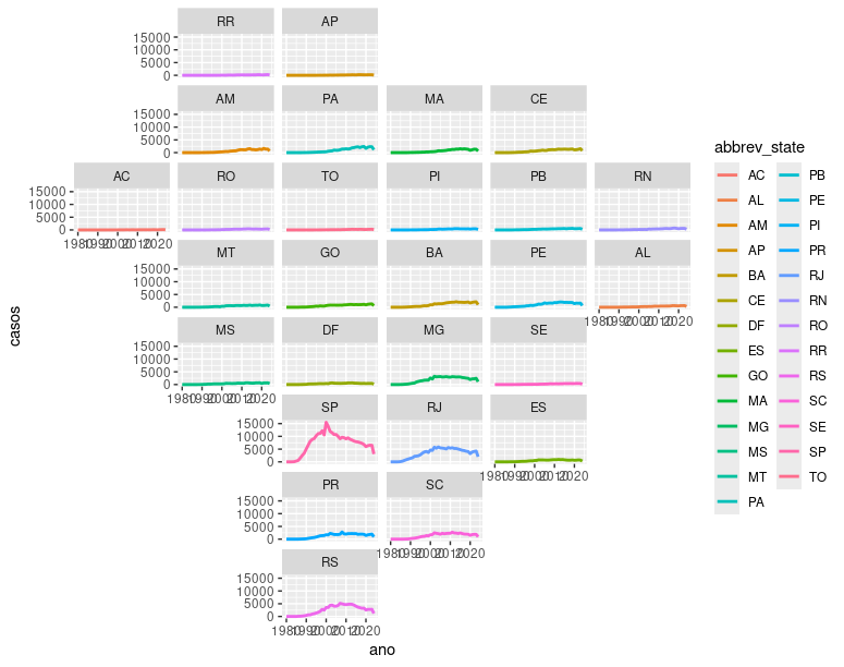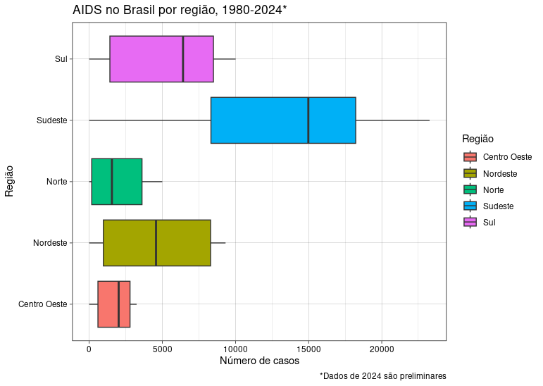 em um mapa. Vamos para isso fazer um mapa do número de casos de AIDS no Brasil por Unidade Federativa no ano de 2023. Vamos precisar dos polígonos dos estados e das regiões: