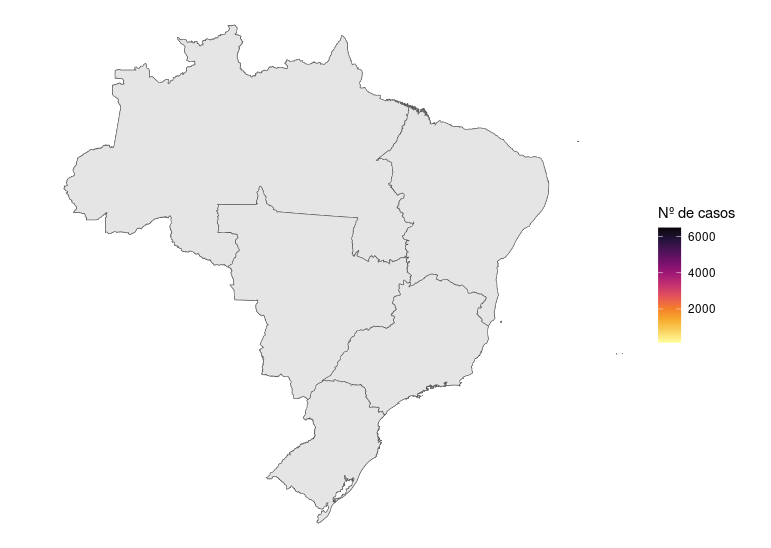 sobrepôs a escala de cores dos números de casos. Queremos somente as bordas das regiões, então precisamos especificar que não queremos preenchimento com fill = NA