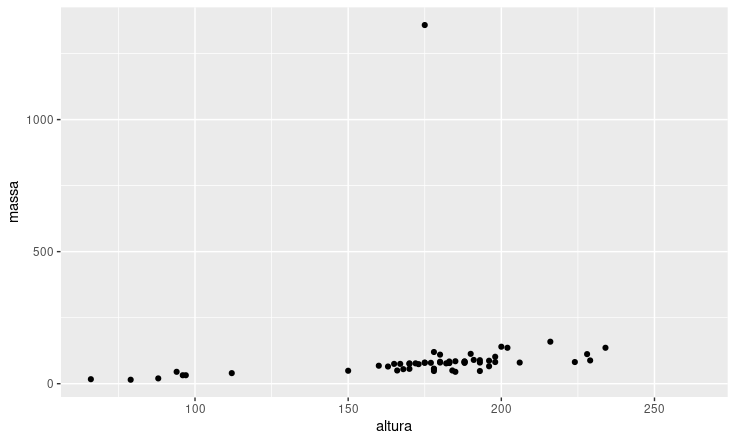 ggplot(data = dados_starwars, aes(x = altura, y = massa)) +