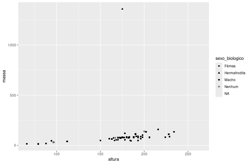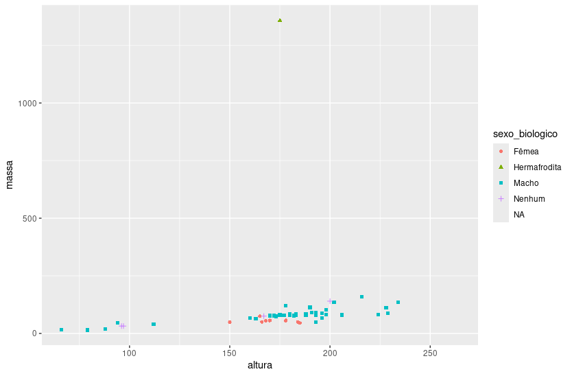 Veja o exemplo abaixo utilizando dados de personagens de Star Wars presente no pacote dados