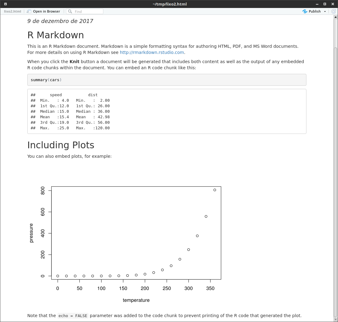 Em seguida você vera no console do R o arquivo sendo transformado para o formato html e exibido em uma janela de apresentação do próprio rstudio