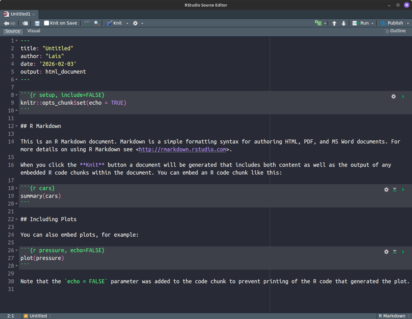 Observe que a primeira no incio do arquivo gerado pelo rstudio temos